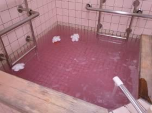 お楽しみ入浴は「桃の湯」で 皆さんに香りと色を楽しんで頂きました。